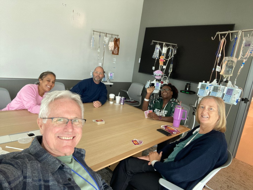 We have a close group here and are routinely visited by some of the recent post transplant patients who must remain close by for 3 months. We had a fun afternoon when 3 of them showed up with snacks and we played cards. It’s been great to get to know them and follow their progress and to be able to ask them any questions we want about what our paths will look like post transplant.