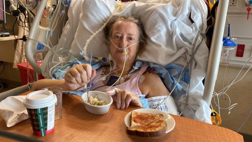 11:20 am: I’m in the ICU with her. So far, everything is going better than expected. She got a male heart and, according to the surgeon, it is very strong. Once she starts breathing on her own, they will pull the breathing tube and have her sit up in a chair. Hopefully, that will happen in the next few hours.