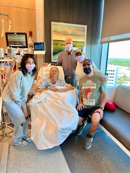 Interesting fact: Mayo Clinic Jacksonville has chosen to make organ transplants their major focus. The weekend I was transplanted they did 3 heart transplants, 2 double lung transplants, a couple of livers and kidneys. I think there were about 10 transplants in 2 days. They all require specialized teams in the OR’s and I don’t know how they manage it. My surgery alone was 9 hrs. A gentleman who was inpatient with me waited 5 months for a simultaneous heart and liver transplant. His heart transplant was officially number 9,999 and his liver was the 10,000th organ transplant at Mayo. There are announcements all over the hospital about Mayo reaching the 10,000 mark and it was our friend who was the pt. Pretty cool.