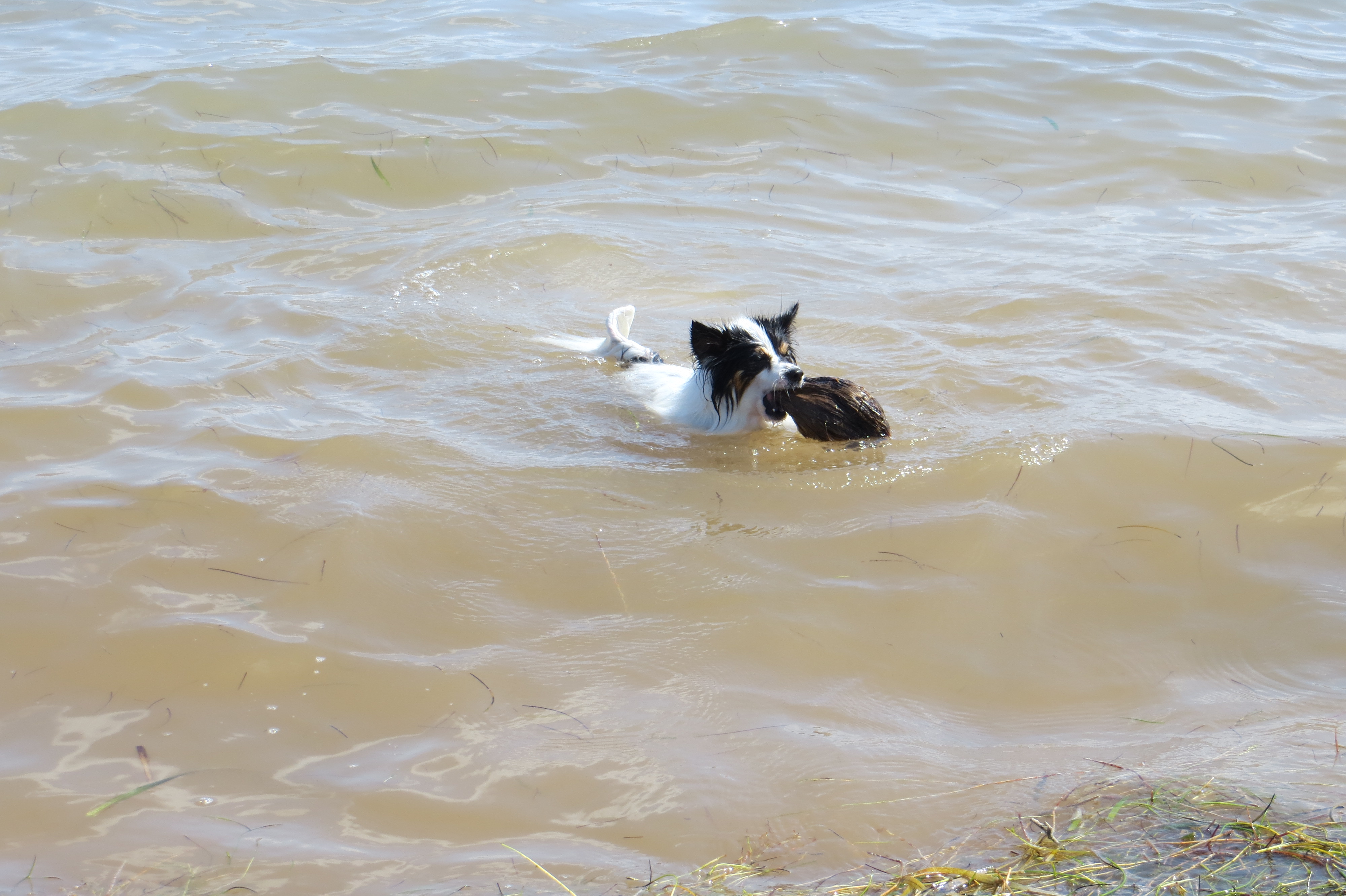 Laia plays fetch with a coconut