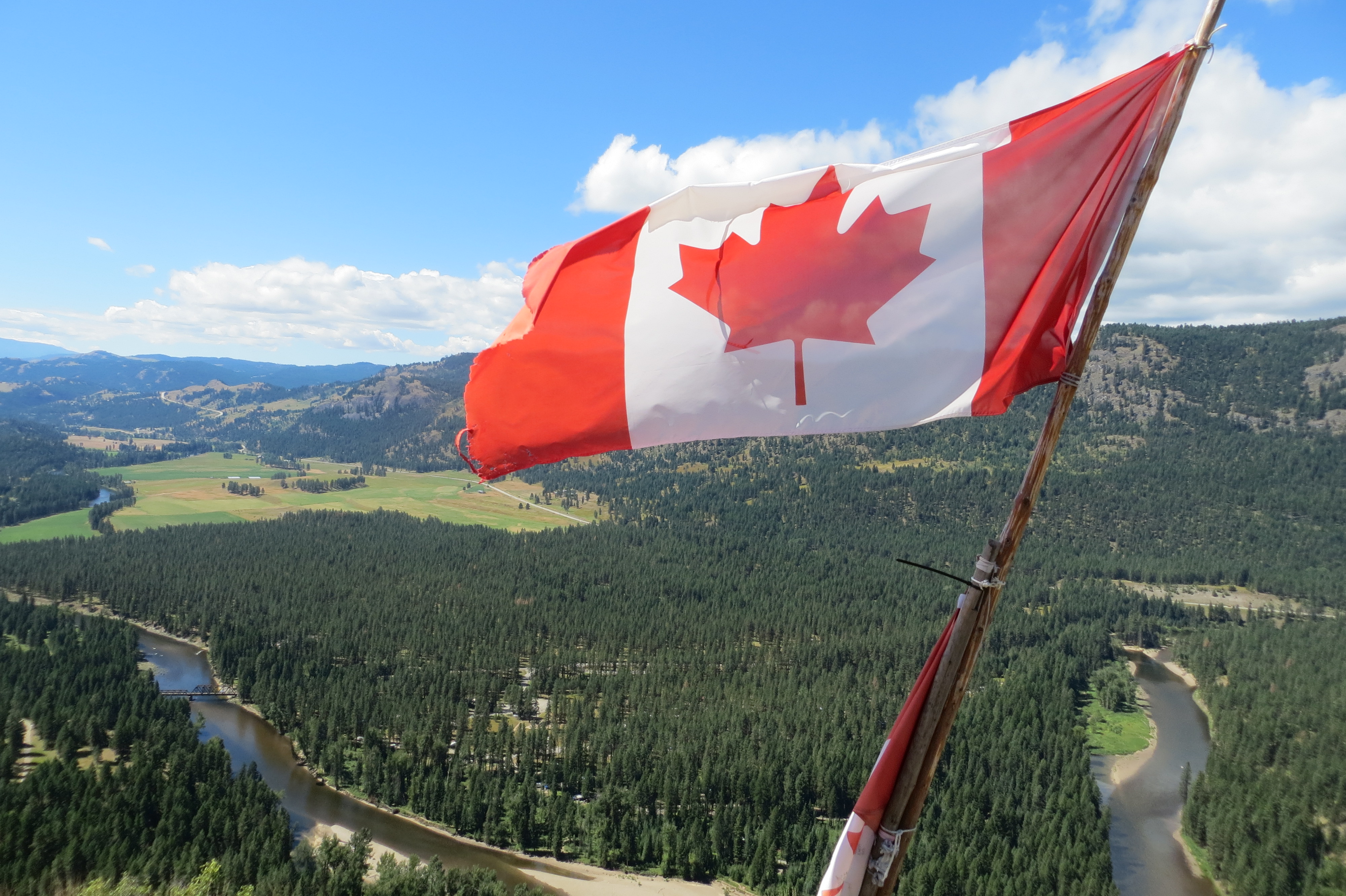 A flag that had been placed at the top of the ridge overlooking the campground and Kettle River