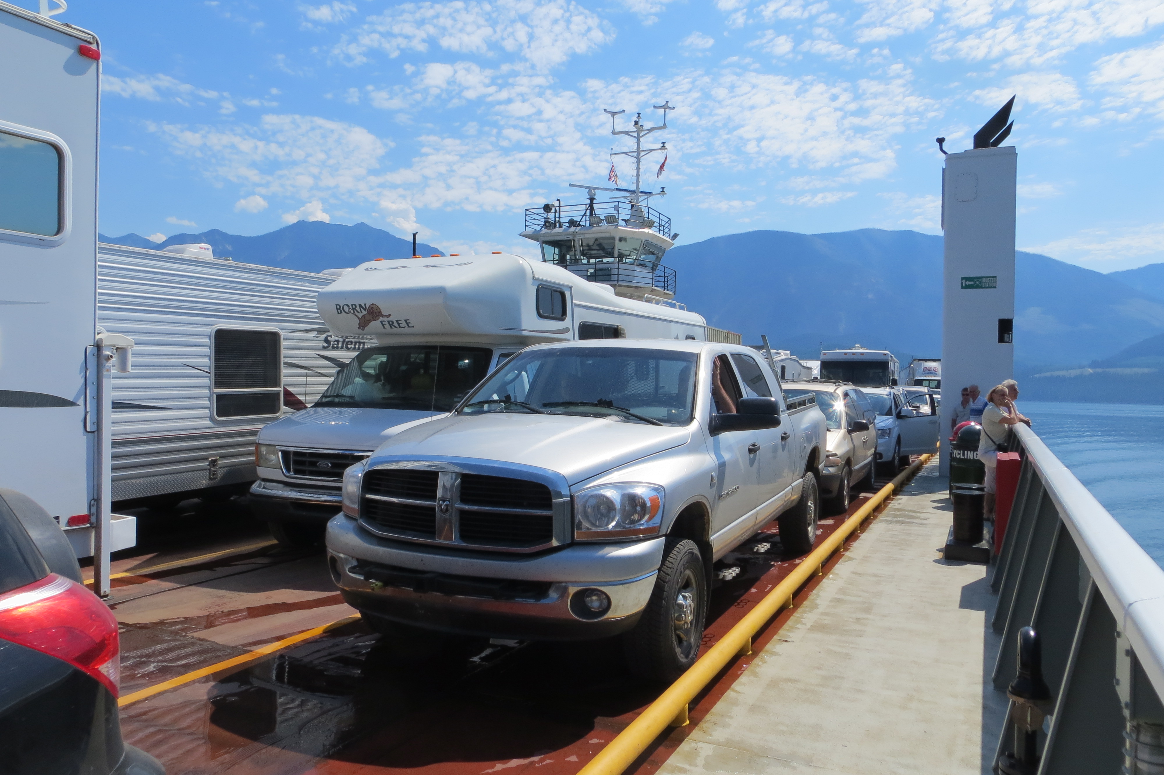 The next day we continued north, driving along the gorgeous Upper Arrow Lake, which is actually a widening of the mighty Columbia River. The Upper and Lower Arrow Lakes are an amazing 143 miles long and this portion of our journey involved going across Upper Arrow Lake on a ferry. Surrounded by mountains, blue skies and crystal clear water, we enjoyed a free 20 min ferry ride from Galena to Shelter Bay. Once over we continued north and then eventually picked up Trans Canada Hwy 1 in Revelstoke and headed directly east toward the Rockies.