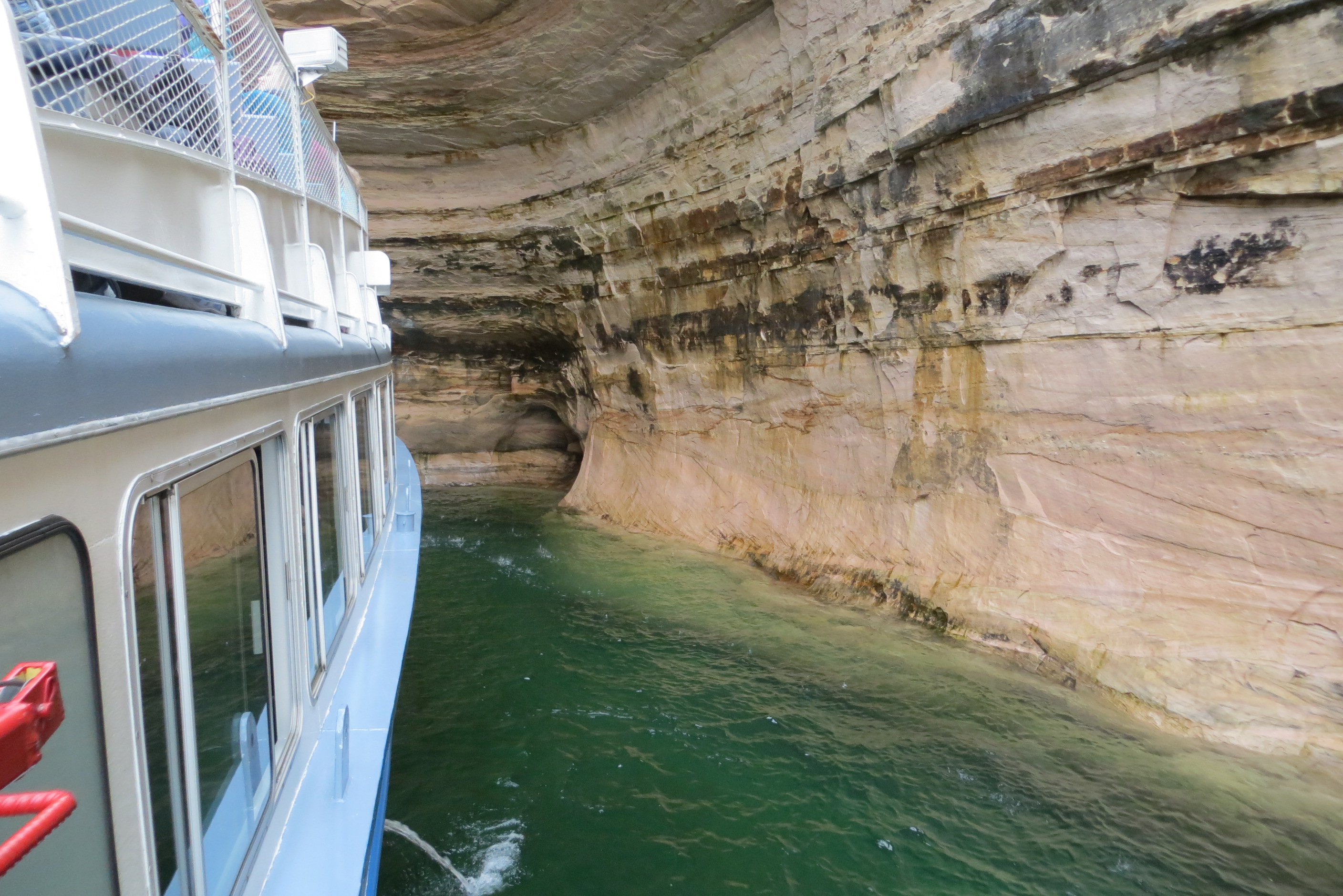 Unfortunately the clear skies didn’t hold out and the cliffs weren’t as brilliant as they usually are, but hey, this is Lake Superior in early June. According to a local, the lake still had ice in it last year at this time and the boats were not able to go out until mid-June. The snowy patches we saw made us appreciate how harsh this area is and the captain stated that water temperatures rarely make it above 44 F .